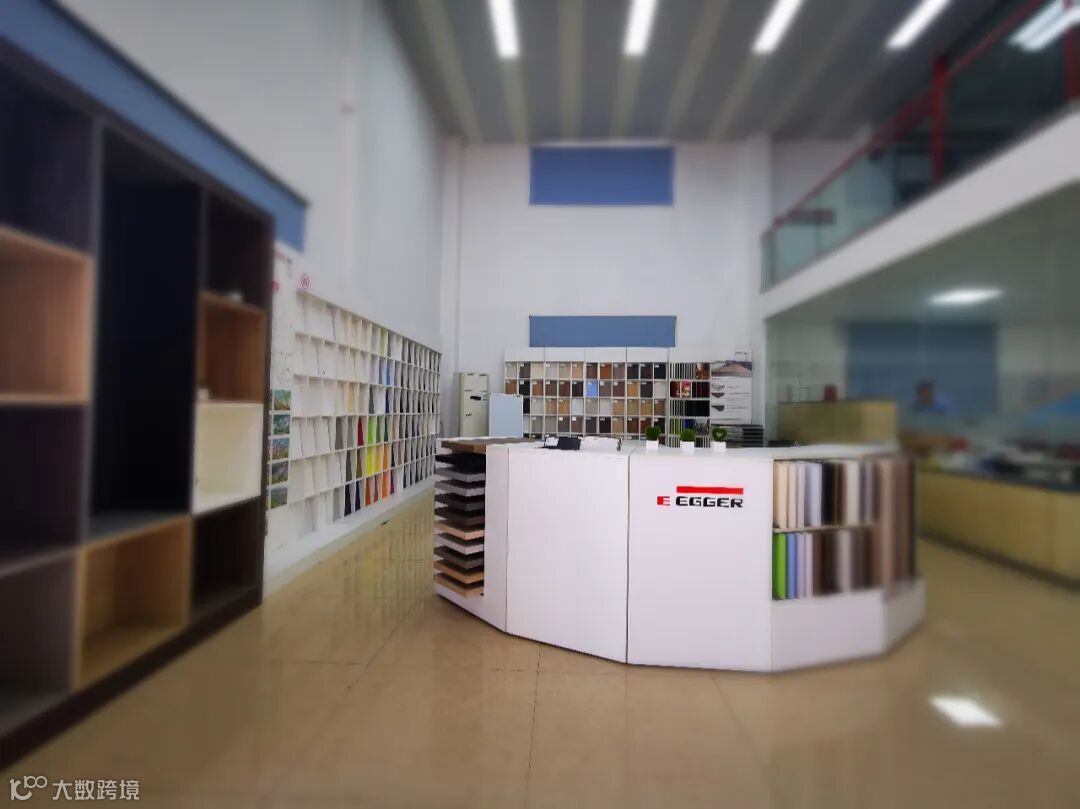 扩建仓储的同时,我们还搭建了400多平米的展厅,通过爱格展示系统,结合橱柜、衣柜等成品更加全面形象的向客户展示爱格板。