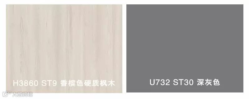 家具以清新淡雅的H3860 ST9 香槟色硬质枫木搭配柔和舒适的U732 ST30深灰色,有着非常养眼的视觉效果,且U732有着天鹅绒般的触感,灰色哑光面,将北欧风格所追求的舒适感做到了极致。