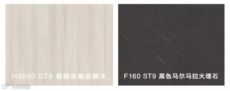 木门与橱柜使用的是爱格H3860 ST9 香槟色硬质枫木,这款浅色木纹自然清新,营造出一种清新明快的家居氛围,搭配F160 ST9 黑色马尔马拉大理石橱柜台面,整体空间层次感更丰富。