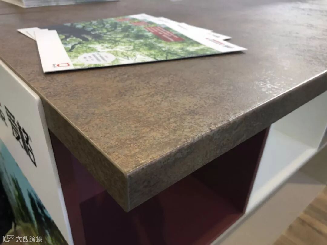 展厅中间,摆放的是一张3650*920mm的长桌,桌面由一张常规的爱格台面板制作,两头做上封边,就是一个成品桌面了。