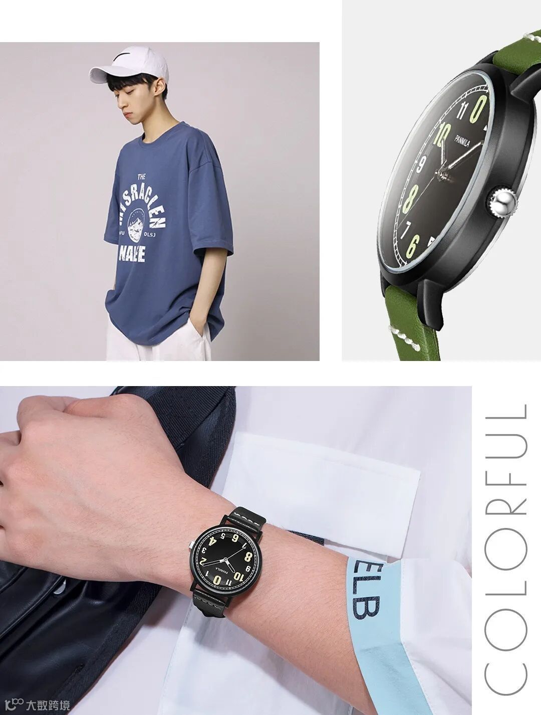 简洁夜光三针搭载双历功能