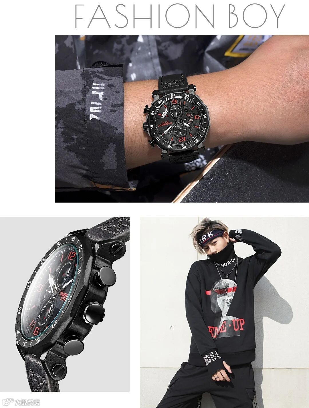 黑红撞色三眼大表盘