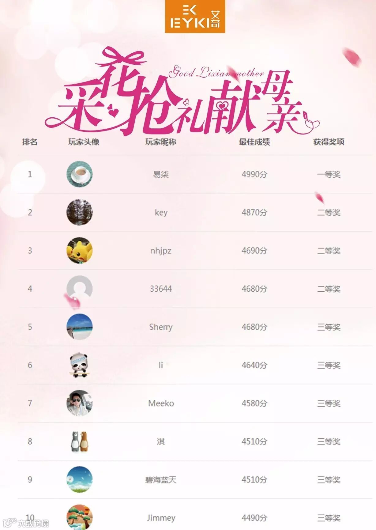 小奇在此恭喜以下前10名的获奖者