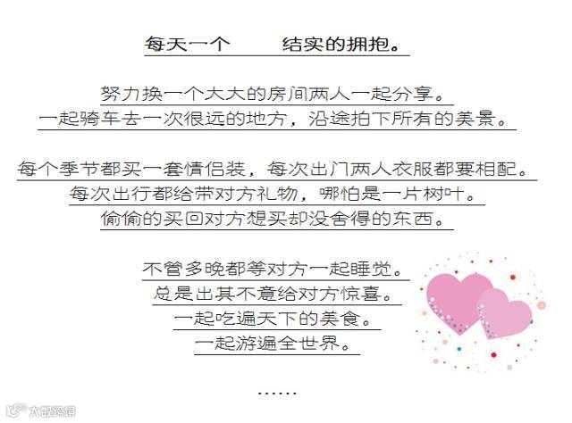 奇是不是傻了啊?给大家看些什么东西呢!别担心,小奇好着呢,只是想提醒一下大家,多久没有和TA享受二人的休闲生活了,可还曾记得你们初识时的美好愿望,那一纸属于你们的爱情愿望清单?别在忙碌的世界中迷失了方向,赶快重启你们的梦幻生活!
