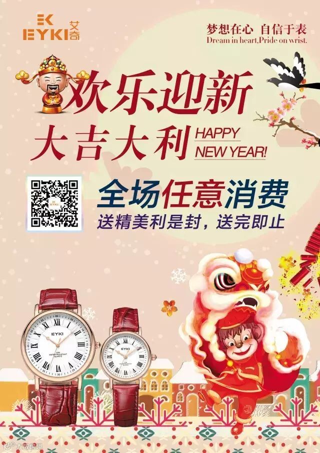 新年的钟声敲不停,小奇的福利送不停,愿EYKI艾奇表给您增添节日的温馨与祝福!