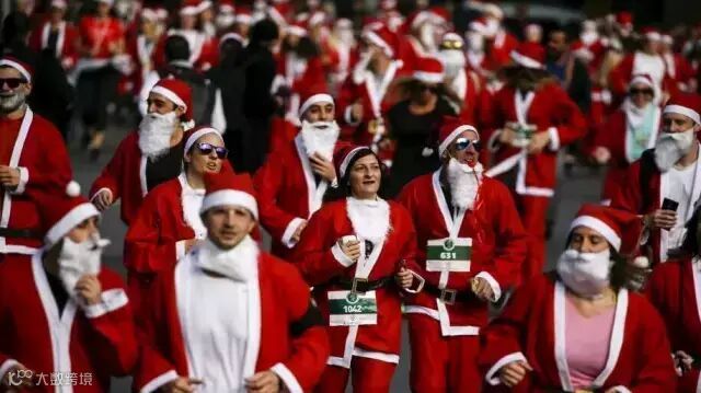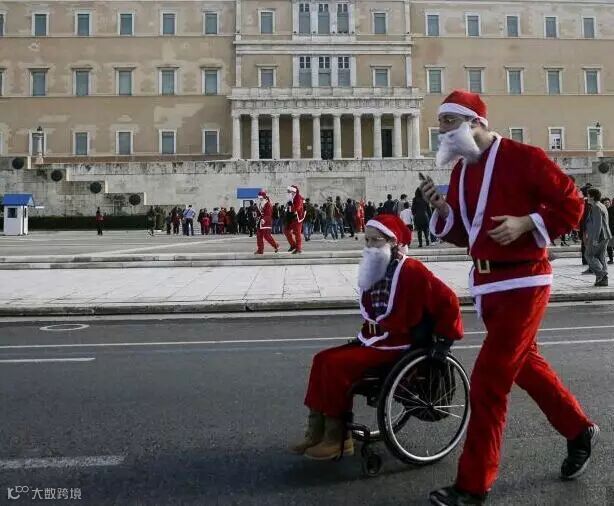 数百圣诞老人齐聚雅典参与"圣诞老人跑"。