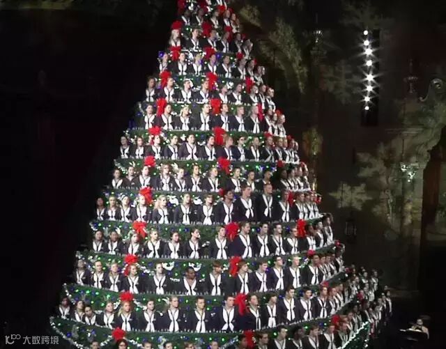 某校220名学生组成一棵20米高的“人体圣诞树”演唱圣歌。