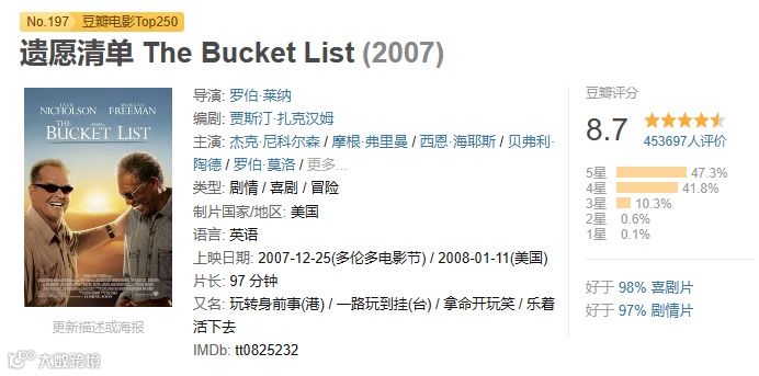 说到这就想跟大家分享一下我最近看的一部电影《遗愿清单》。