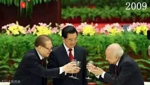 2009年建国60周年国庆招待会上,江泽民和胡锦涛向西哈努克亲王祝酒。两任总书记还用手捧杯肚的方式持杯,西哈努克亲王用双手示意捧杯,显示恭敬。
