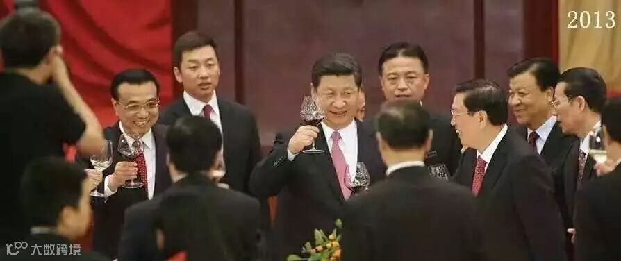 2013年举行的国庆招待会上,新一届的常委们的标准持杯姿势整齐划一,承装不同进口红酒各自都采用了不同的杯型。专业程度令人惊叹。