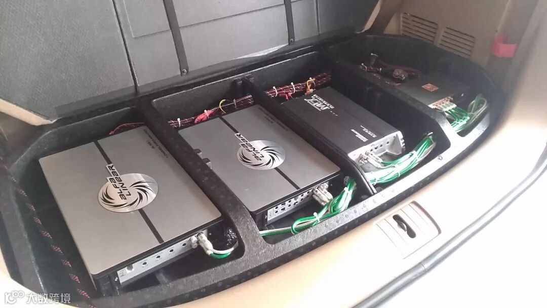 功放来自马来西亚的凌力和美国的MTX,加上一台DSP音频处理器,四台机器都安装后尾箱底下,可以节省不小的空间。