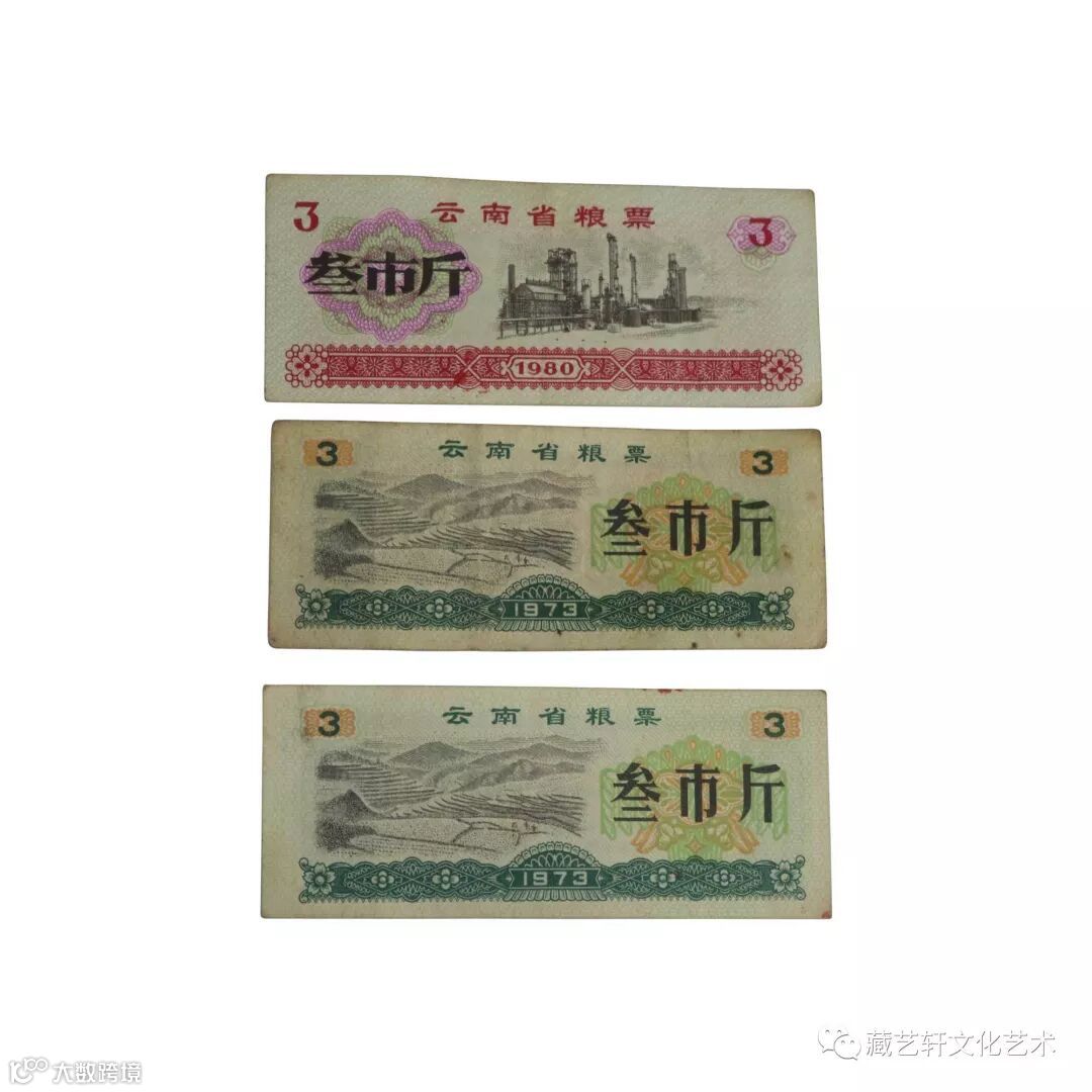These three collections are "Three Kinds of Grain Tickets in Yunnan Province", one in 1980 and two in 1973. This group of food stamps belongs to local food stamps, issued by Yunnan Provincial Food Bureau, and used throughout Yunnan Province. The upper front of the grain ticket is "Yunnan grain ticket". The left value in 1980 is "three city catties". The right value in 1973 is "three city catties". The year of issuance of the grain ticket is below. On the back is the instructions for the use of food stamps. In the era of bills and certificates, bills and certificates were regarded as "life tickets" and "second currency" by the common people, so they were equal to and even more precious than bills. This group of food stamps is rare in existence, of great significance and of high collection value.