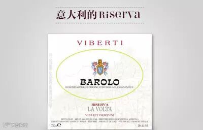 最后是“Riserva”,这个词是一个意大利葡萄酒用语,通常指在出售前经过陈酿的葡萄酒,其最小酒精度比一般的葡萄酒略高,一般为0.5~1度。最著名的Riserva葡萄酒是巴罗洛(Barolo)和巴巴莱斯科(Barbaresco)。