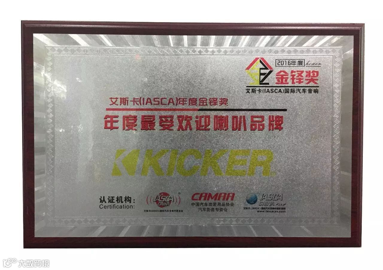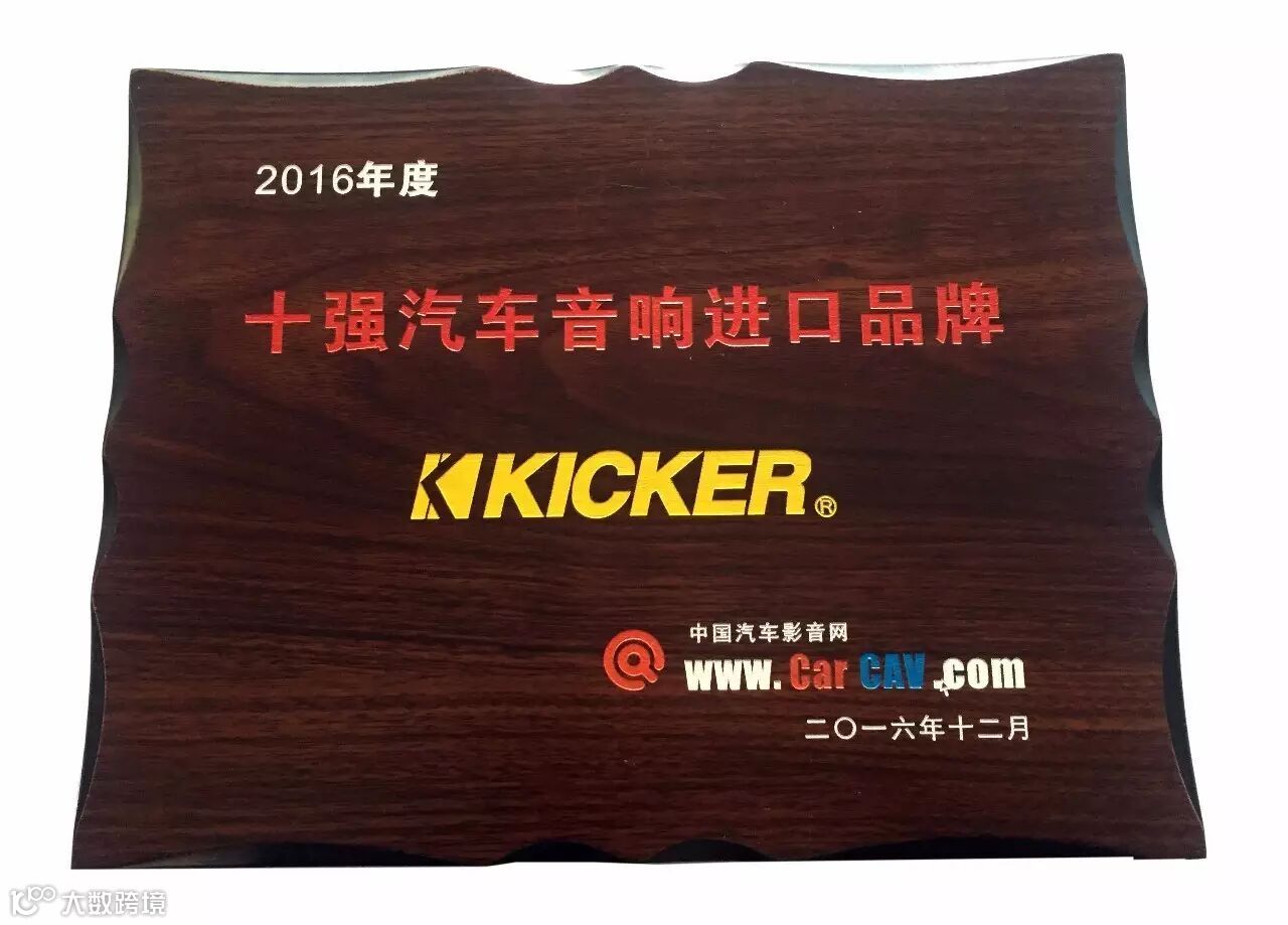 KICKER K牌”获得2016年度十强汽车音响进口品牌,连续十年获得此荣誉!