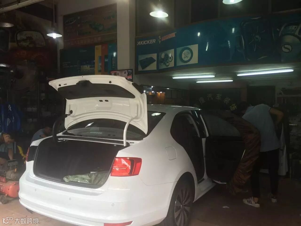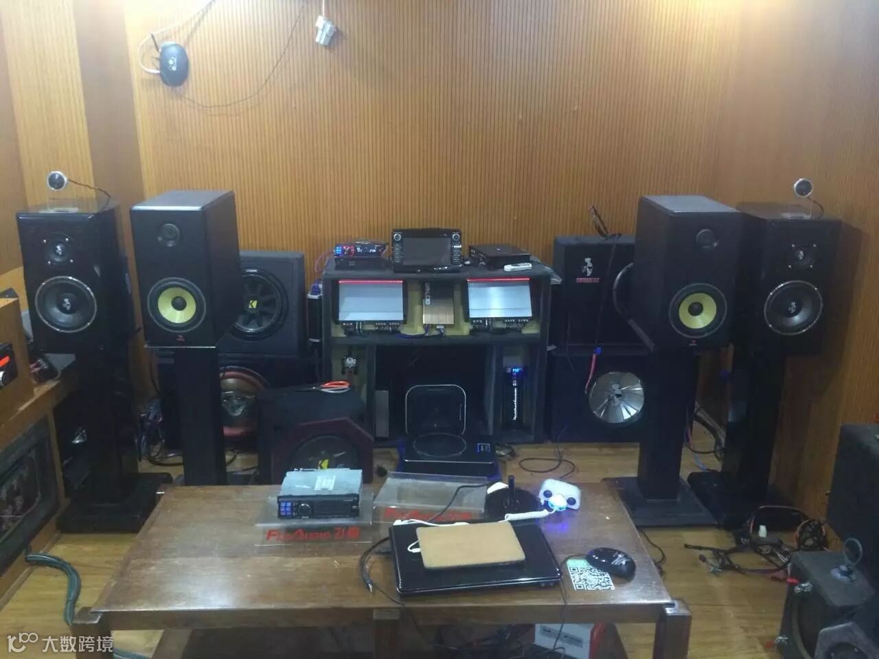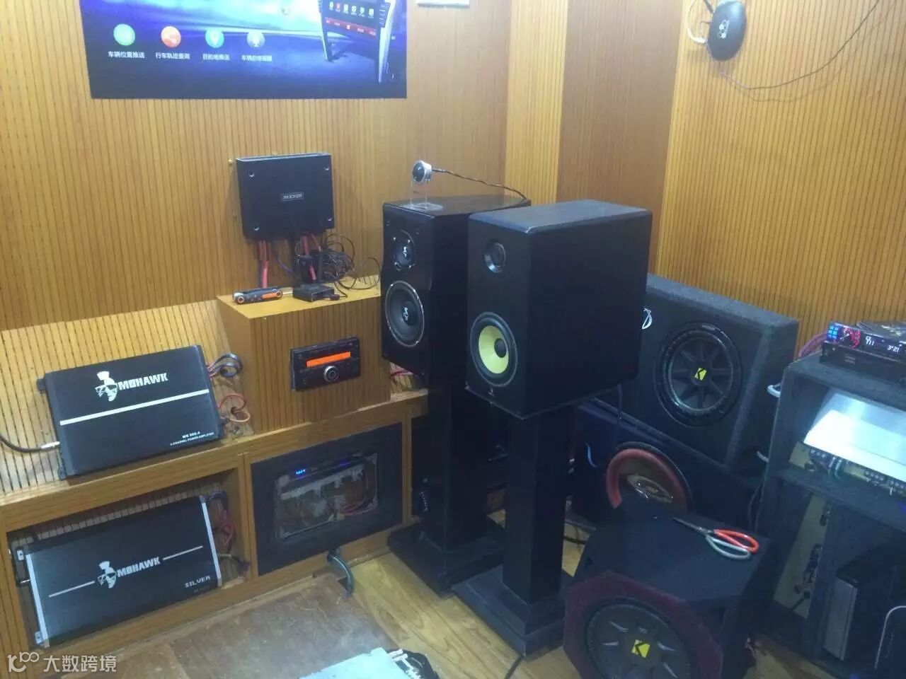清远建捷汽车音响试音室,拜放的大部分是美国KICKER、豪客的产品
