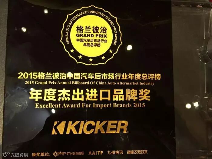 KICKER荣获2015格兰彼治中国汽车后市场行业年度总评榜年度杰出进口品牌奖