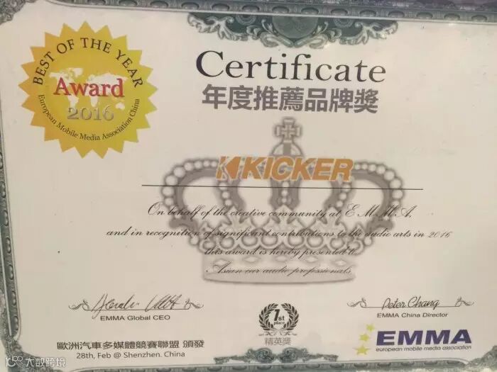 KICKER荣获中国EMMA年度推荐品牌奖