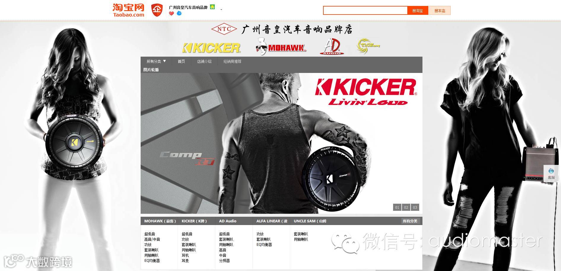 广州市音皇汽车音响有限公司在淘宝网开了一家网店,上架的品牌有MOHAWK(豪客)、KICKER(K牌)、AD Audio、Alfa Linear(凌力)。也是所代理品牌唯一的淘宝店,并没有授权任何经销商开设分销网店,及在网上售卖相关商品,特此说明。