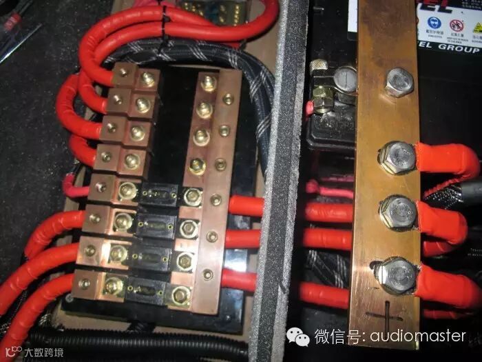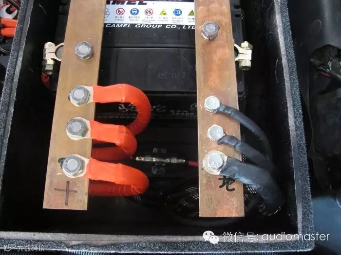 再看看电瓶的安装,5只电瓶用两条坚硬的铜片固定