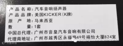 KICKER品牌为本公司旗下代理品牌,从未授权、委托任何单位或个人从事生产制造。所有加盟代理销售的实体店、网络销售店,都必须拥有本公司正式颁发的授权证书。本公司出售的KICKER音响产品,均贴有正品防伪标签、条码和产品标签,消费者可以通过条码查询真伪,查询电话:020-87646644。所有无此系统标识的均不能保障是正品,本公司不提供任何服务保障。请消费者在购买时认真识别。