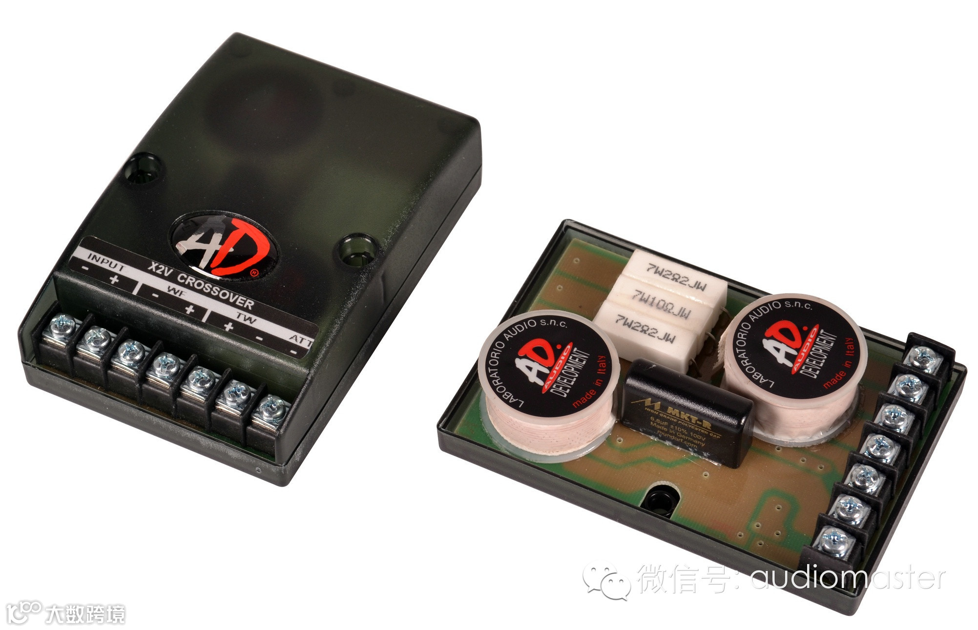 AD600六寸两路喇叭套装包括W600六寸中低音单元、T100高音单元、X2V两路分频器各两个。