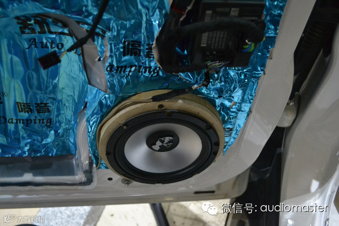 前声场的豪客MS6.2喇叭安装,垫高喇叭位置,接近门板扩音口,不散落在门板内