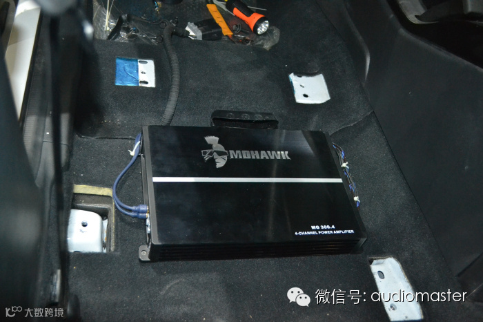 豪客MG300.4功放提体积的大小正好可以安装在隐蔽处的司机座位下面