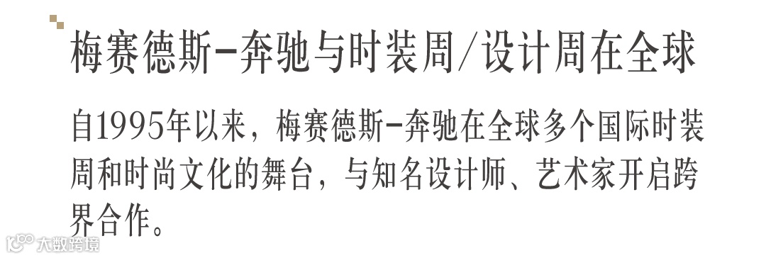 梅赛德斯-奔驰作为汽车发明者,不断以先锋之姿站在潮流前沿,引领着汽车设计与时尚文化的发展。自1995年以来,奔驰已成为全球时尚产业的重要参与者,在设计、时尚、艺术、摄影和娱乐等多元领域开启广泛合作。奔驰作为众多全球顶级时装周的合作伙伴,在伦敦、纽约、柏林、中国等世界主要时装周舞台,通过与时尚品牌合作共创、助力国际顶级时装周和支持新兴设计人才发展等举措,在全球范围内持续推动时尚产业的长期发展。
