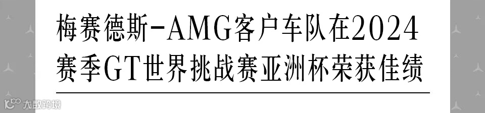 4支梅赛德斯-AMG客户车队,共7台赛车参加2024赛季GT世界挑战赛亚洲杯,获得了优异战绩。其中,Climax Racing车队的车手组合,闵衡/Jaylyn Robotham获得GT3 SIL-AM组别季军。Craft-Bamboo Racing车队的车手组合,曹琦/DanielMorad 获得GT3 PRO-AM组别亚军,并位列总成绩榜第二名。Triple Eight JMR车队的车手组合,HH Prince Abu Bakar lbrabim/Jordan Love获得GT3 PRO-AM组别季军。梅赛德斯-AMG将继续与客户车队全力合作,创造更多赛道佳绩。