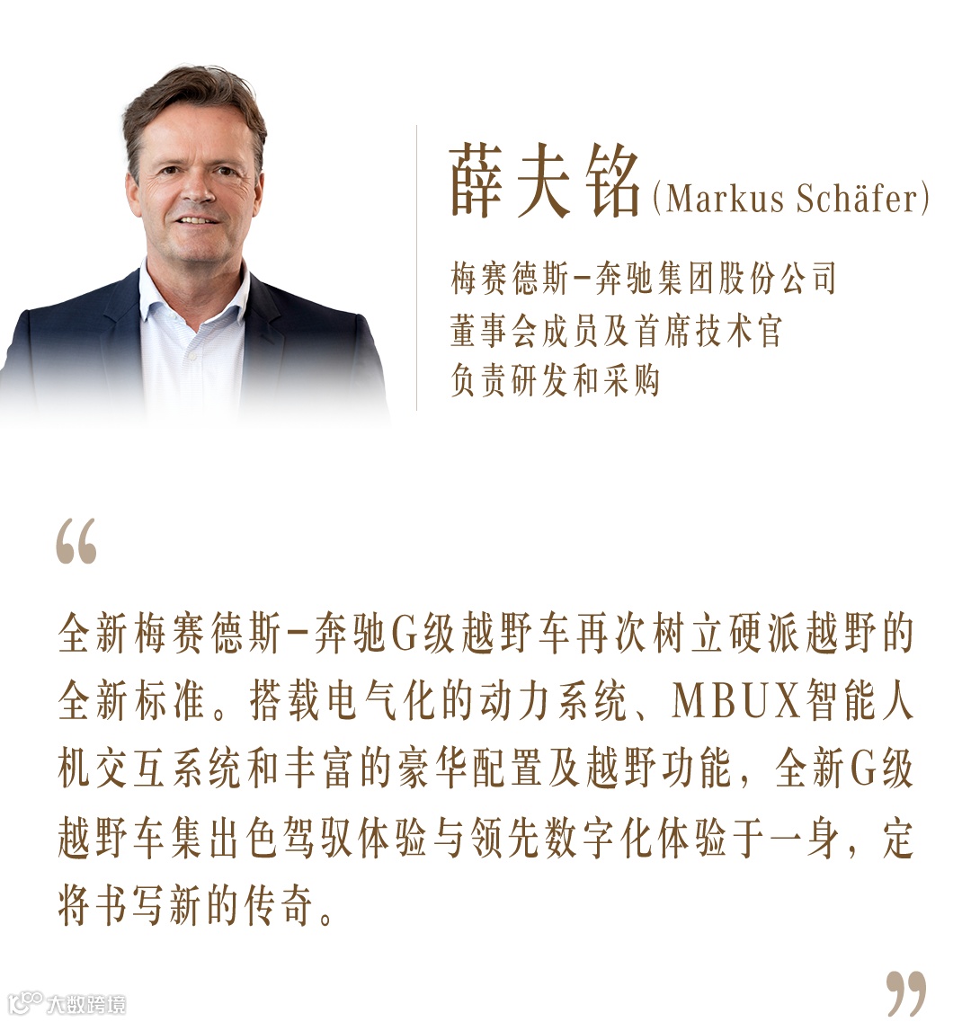 今年,G级越野车家族的首款纯电车型也将正式问世, “GELÄNDEWAGEN”越野图腾将与更多心怀梦想的人一道,踏上更多未知之旅,探索更多属于勇敢者的无限可能。