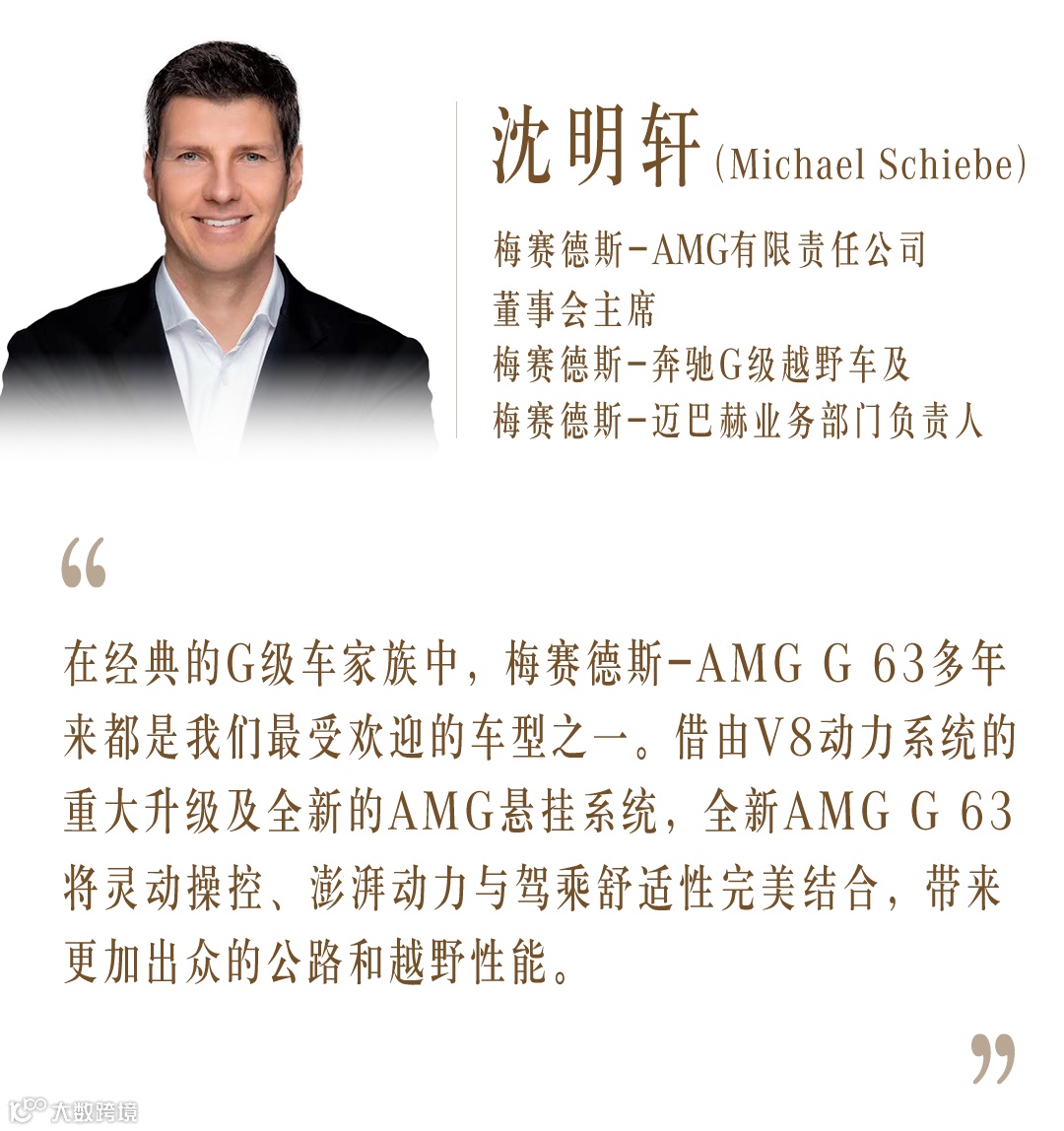 越野图腾与性能豪华的时代际遇,令全新梅赛德斯-AMG G 63更传奇非凡。凭借行业领先、全新升级的AMG动力系统及底盘科技,结合新增的AMG专属设计元素以及升级的智能人机交互系统,全新AMG G 63彰显更纯粹的“非凡驾驭”精神。
