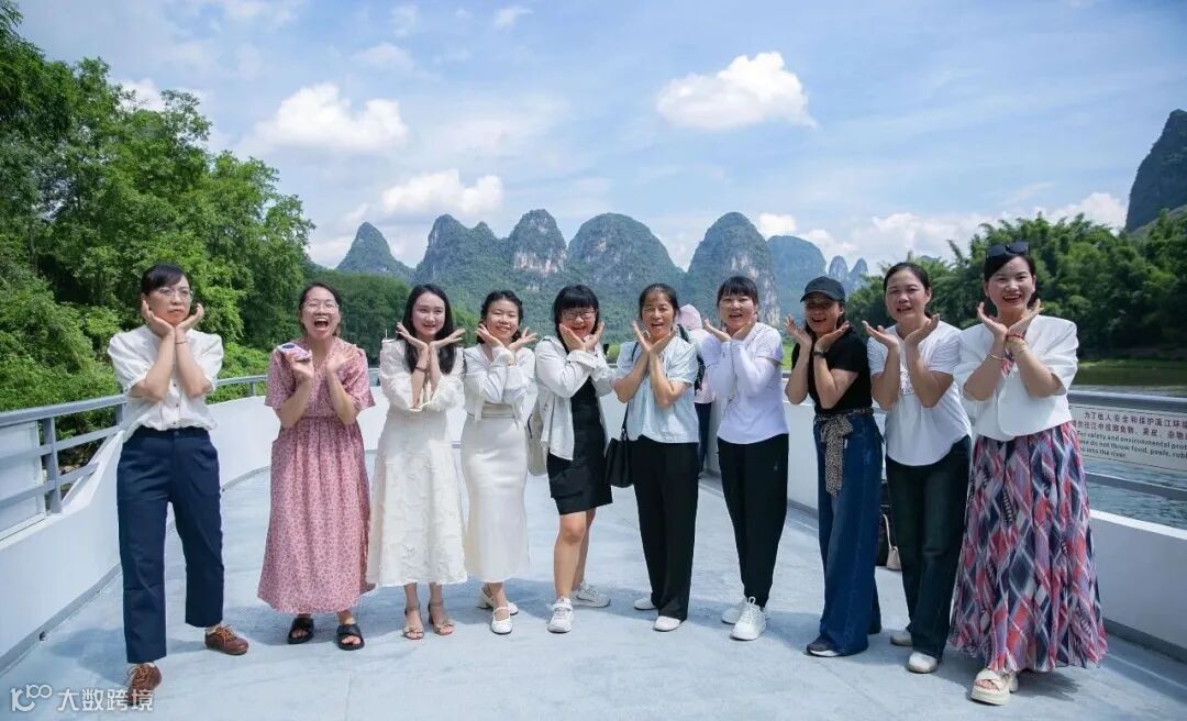 旅程的第二天我们来到了阳朔,乘坐豪华游船,漫游在漓江之上,纵览两岸变化万千的连绵山峰。刘代欢组长不禁感慨:乘着船,品着新鲜的鱼虾,再配上这桂花茶,看山看水,真是太惬意了~
