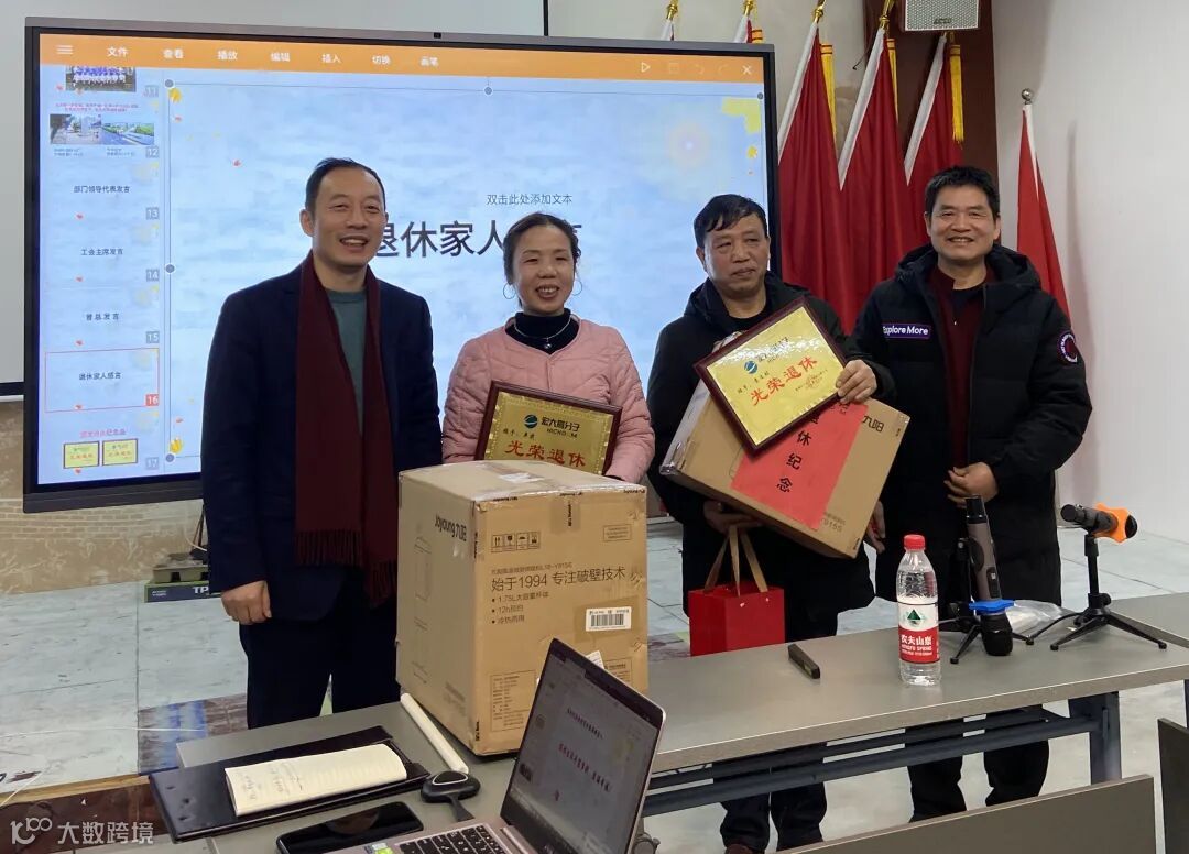曾总、尹总、工会主席(言蓉同志代传达),他们都充分肯定两位家人在宏大数十年如一日的坚守与付出,其次祝愿他们的退休生活充实幸福!
