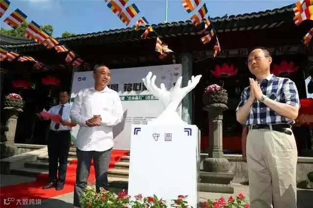 接着,由上海市殡葬管理处处长高建华、上海市殡葬服务中心主任何兆珉为“错时祭扫之守圆”(生命晶石系列)艺术雕塑揭幕。两位领导双双按下手印,行“守圆”礼,通过双手让选择“生命晶石”的逝者一路走好,守护圆满。