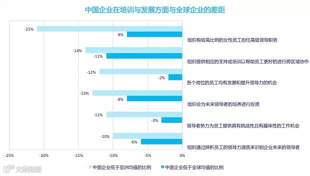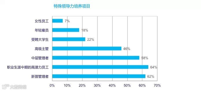 【1】中国企业在领导力培养方面支出增加。但仅限于特定群体,比如高级管理者。对女性员工的领导力培养甚至低于7%。