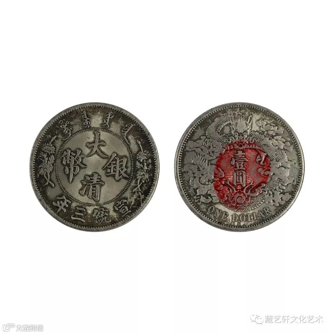 This group of coins is one yuan of silver coins in Xuantong's three-year-old Qing Dynasty and seven yuan in Guangxuyuan Treasury of Guangdong Province. The front side of the coin is inscribed with the Chinese character "Daqing Silver coin" in the bead circle. The upper end of the bead circle is Manchu, and the lower edge is the Chinese character "Xuantong three years". The font is neat and the strokes are strong. The chrysanthemum decorations are arranged on the left and right sides. In the middle of the back of the coin is engraved with the Chinese character "one circle" and in English "one circle" at the lower edge. The dragon rises from left to right along the edge and rises around one circle. The dragon head is placed with two tendrils stretching horizontally. The dragon scales are orderly. The particles are visible. The longan is prominent, shining, the nose is beautiful, and the Imperial Majesty is highlighted.