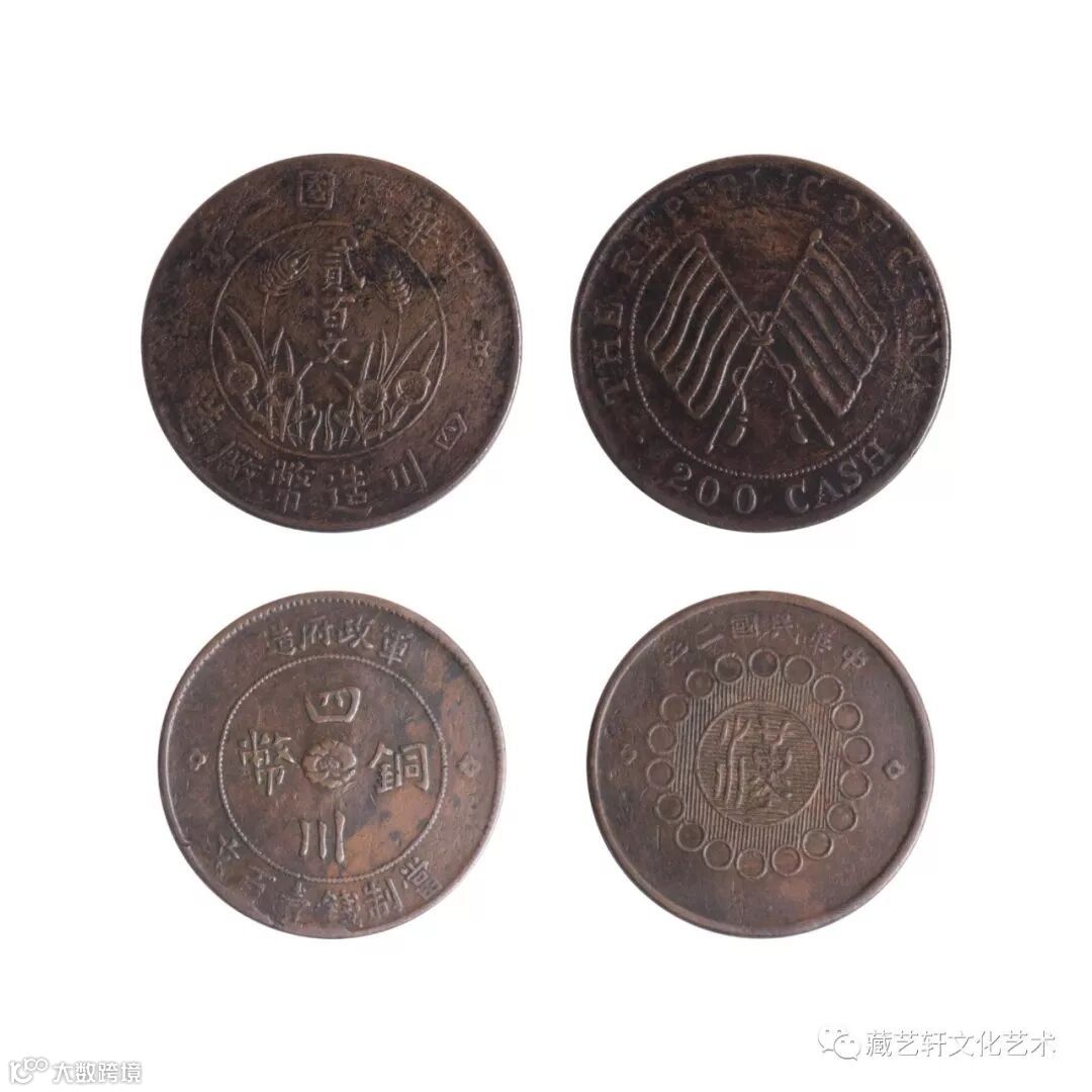 经辛亥革命后,孙中山成为中华民国临时大总统。民国成立时,由于币制尚未建立,除四川改铸大汉银币,福建改铸中华元宝外,主要的造币厂,大都仍沿用前清钢模铸造银币,以供流通需要。由于币制混乱,临时政府财政部长陈锦涛呈文大总统孙中山,鼓铸10万元纪念银币以为整顿。四川铜币,是晚清和北洋时期四川省地方政权铸造的货币。由于川省银铜矿缺乏,加之辛亥革命以后军阀割据,致使四川铜币发行量巨大,致使物价虚高,影响经济发展。进入北洋时代以后,时局动荡,各军阀纷纷利用铸币厂谋取私利,铸造的铜币达数亿枚,四川币制混乱不堪。本文主要介绍一枚双旗币和一枚四川铜币。