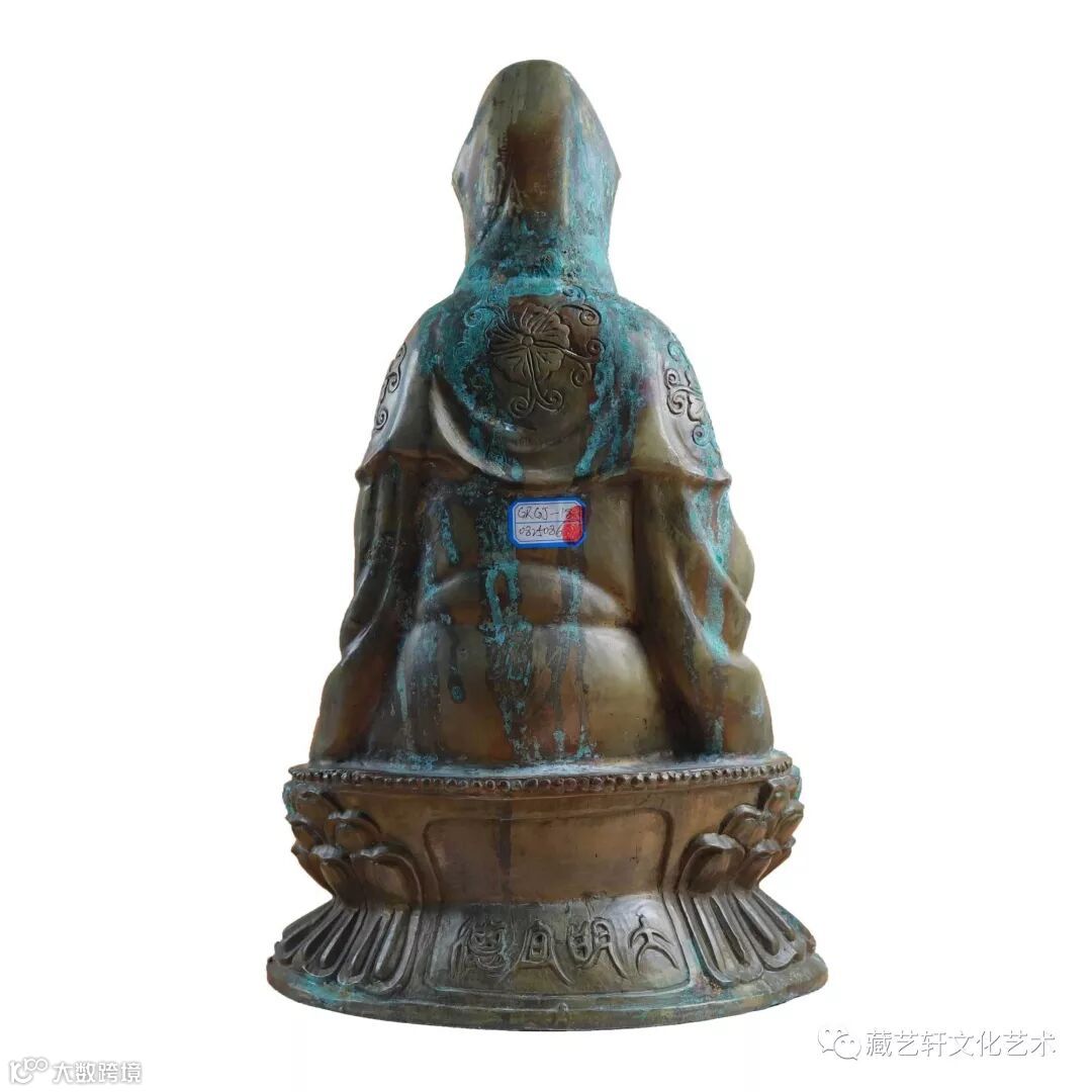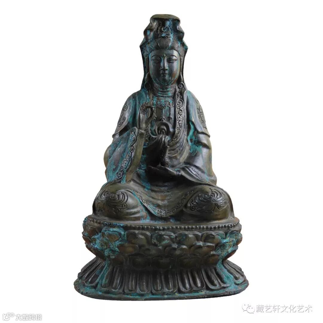 This bronze golden water-purifying Avalokitesvara, wearing a crown, combing high hair buns on the top of the head, has a plump face, slender eyebrows and long eyes, a high nose, thin lips, large ears drooping, a good expression, natural manner, vivid image, fine workmanship. The figure is more symmetrical and coordinated, the clothes are light and close to the body, the lines are flowing gently, and the folds turn freely. Hold the water bottle and sit on the lotus seat. The pedestal is a girdle-waist type inverted lotus pedestal, with a wide shape, fine carved lotus petals and exquisite craftsmanship, which is symmetrically distributed in a week. It is a religious and cultural collection with great potential and rare value.