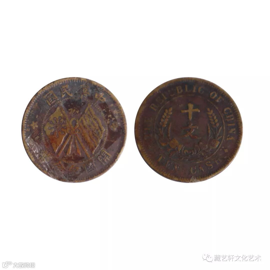民国成立后,铜元仍继续大量流通使用。1914年,铜元正式改称“铜币”,民国发行的铜币与清朝最大的区别是龙纹被换成了由稻穗组成的嘉禾纹。各省铸造的铜元大多为两面叉的国旗图案,并有“开国纪念币”或“中华民国铜币”字样。1911年辛亥革命胜利后,清帝退位,中华民国建设。中国民主主义革命的先驱者孙中山就任中华民国暂时大总统,并在颁布的“暂时大总统令”中提出要“另刊新模,鼓铸纪念币”,随后武昌和南京两处造币厂率先铸行了 “中华民国开国纪念币”铜元辅币,以十文面值的为主,在天下大量刊行以取代清朝铜元。这就是“中华民国开国纪念币” 铜元的由来。本文主要介绍一枚中华民国开国纪念铜币。