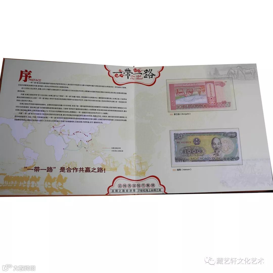 “一带一路”是“丝绸之路经济带”和“21世纪海上丝绸之路”的简称,为彰显人类社会的共同理想和美好追求,加强沿线各国互联互通伙伴关系,构建全方位、多层次、复合型的互联互通网络。2013年,中国分别提出建设“新丝绸之路经济带”和“21世纪海上丝绸之路”的合作倡议。旨在促进经济要素有序自由流动、资源高效配置和市场深度融合,推动沿线各国实现经济政策协调,开展更大范围、更高水平、更深层次的区域合作,共同打造开放、包容、均衡、普惠的区域经济合作架构。为宣扬与促进这一倡议的提出和实施,限量出品“一带一路纪念册”衍生产品项目。本文主要介绍一套《一带一路金银至尊大全》。