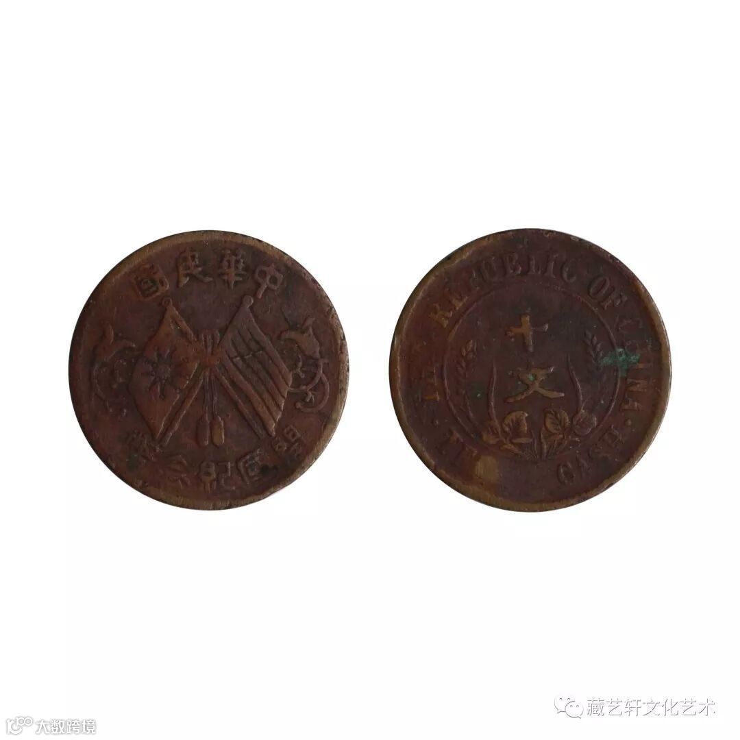 中华民国开国纪念币十文铜币,见证了中国由封建王朝过渡到民国时期那段动荡不安的历史时期,它象征着中华民族时代的发展,当然更是那段历史的“见证者”。藏品虽经历了无穷岁月,但纹路依然清晰可见,上面的锈迹也见证了其历史的积淀,具有非常明显的历史过渡性特征,有着难以言喻的价值。