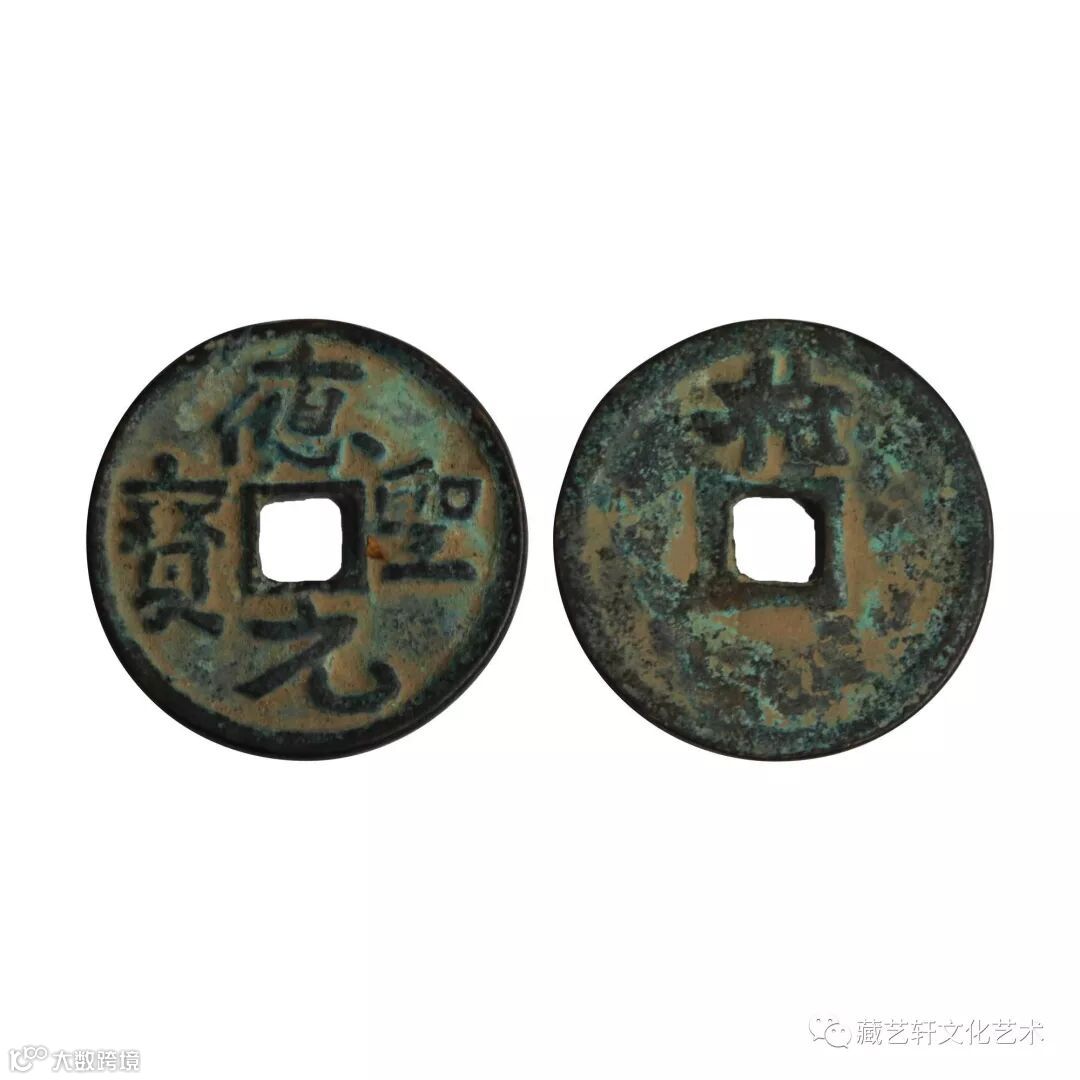 应圣元宝背拾,乃五代十国时期燕王刘守光应天元年(公元911—913)所铸钱币之一。历谱所载,皆曰此钱为试铸币,其中的理由为刘守光北燕政权存续时间仅有三年,国小时断,遗存稀罕,虽为言孤仅,然亦定一级,是为珍罕矣。