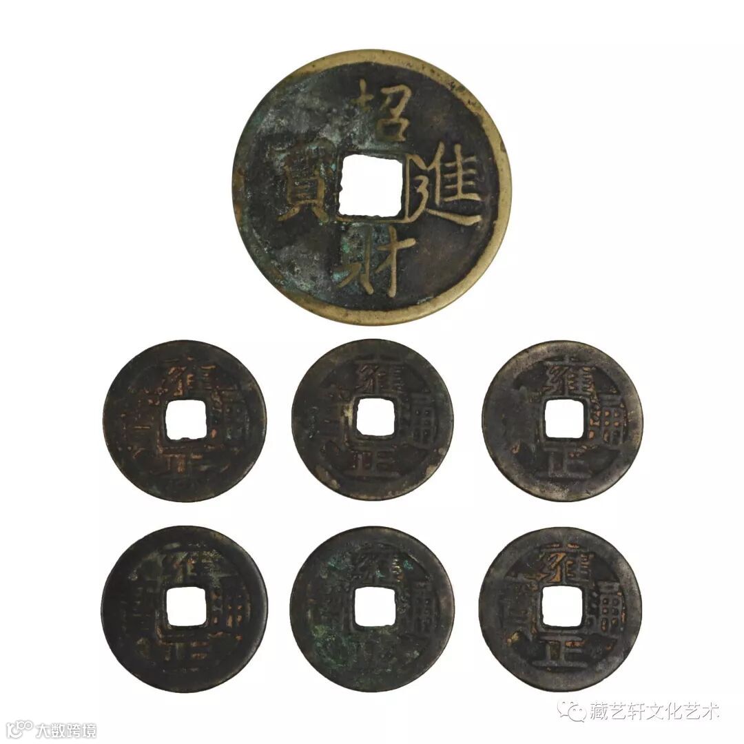These seven sets of coins are respectively the Eight Diagrams money for recruiting treasures and six Yongzheng Tongbao coins. Among them, the eight hexagrams of recruiting wealth into treasure spend money inside and outside, with four characters of recruiting wealth into treasure on the front and a round figure on the back. The eight hexagrams refer to eight trigrams of "Qian, Kun, Zhenzhen, Kan, Pu, Shan, Li, Duan". "Yi Taiji, Sheng Liangyi, Sheng Liangyi, Sheng Liangxiang, Four Xiangsheng Bagua" in the book "Yi Jici". The rich content of money is the epitome of folklore and folklore of different generations. The auspicious connotation represents the yearning and blessing of the ancient Han people for a better life.