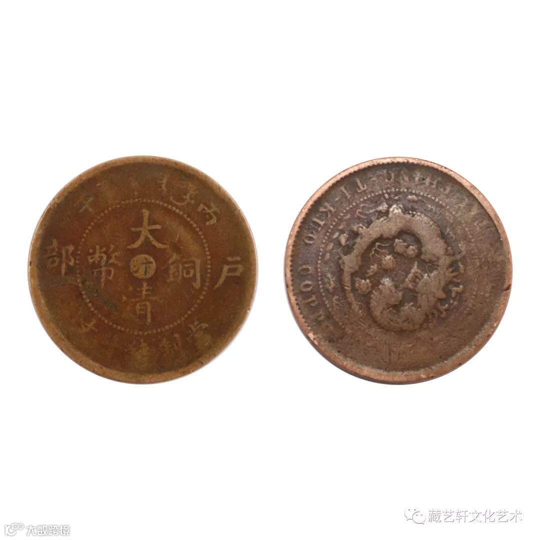 此枚户部大清铜币:正面珠圈内铸有铭文“大清铜币”四字,中间“汴”字代表河南,左右均匀分列“户部”二字,珠圈外上环铸满文“大清铜币”字样,左右分布“丙午”,下环铸钱币币值“当制钱十文”。背面中心刻腾云五爪龙一只,工艺完美,风格独特,看起来栩栩如生。钱面完整清晰,该币所有字面、图案表面均依势圆润凸起、错落有致,有立体雕塑之感。文字间架结构大气磅礴,犹如墨迹正在饱满之时,令文人叹为观止。具有很高收藏价值。