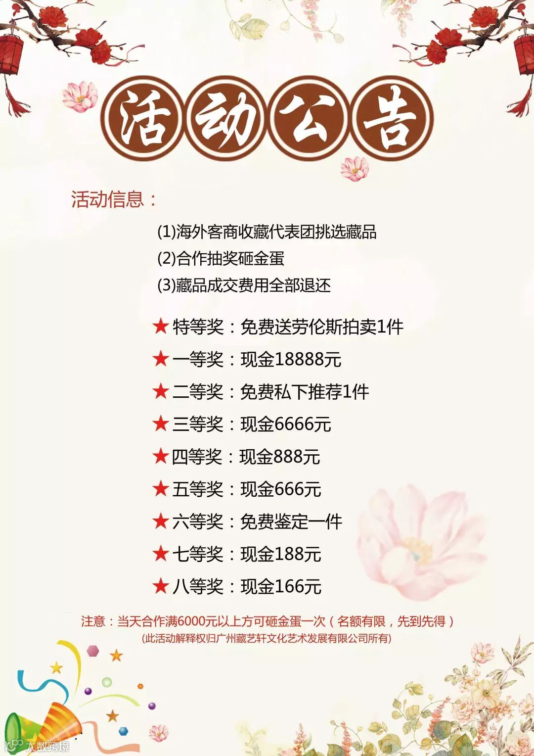 抽奖前提:当天合作满6000元以上方可砸金蛋一次。