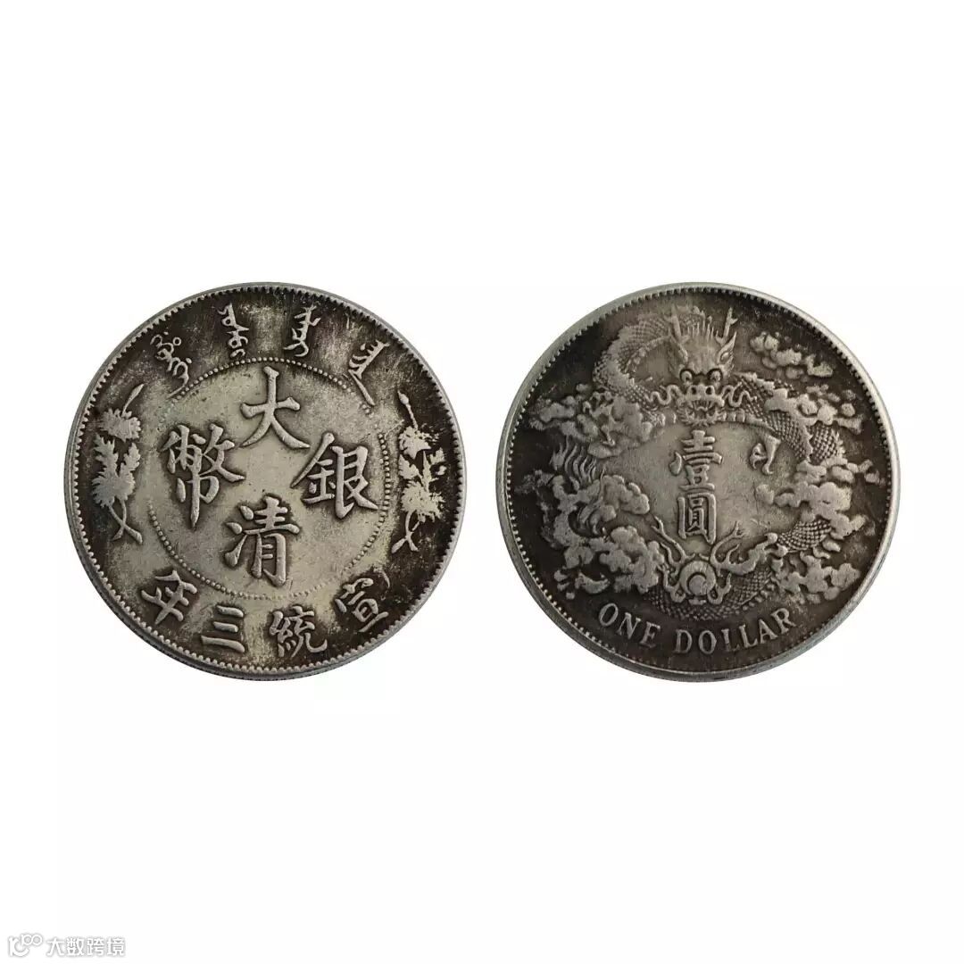 大清银币壹圆,清宣统三年(1911)天津造币总厂铸。当时清政府欲统一币制,聘请海外高级技师精心设计制造了这套宣统三年大清银币。新币刚试铸成功,正逢武昌起义,于是大部分新版银币胎死腹中,只留有少量币。使之具有很高的文物收藏价值、历史文化价值以及艺术品鉴价值。
