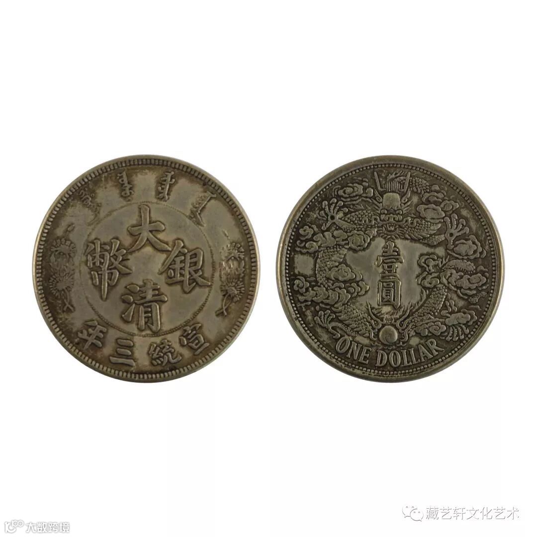 宣统三年银币形式多样,其中宣统三年大清反龙银币,1911年由天津度支部造币总厂试铸,因龙形图案与其他银币龙尾偏向相反而得名,铸量希罕,极为珍贵。此藏品为大清银币反龙版,正面上下满汉文“宣统三年”,左右为束花一对。背面为蟠龙和英文ONE。宣统三年大清银币反龙壹圆,试铸样币并未发行,数量极罕!中国银元珍品之一。“反龙”龙爪太过“张牙舞爪”,使得威猛有余、仪态不足,作为钱币上面的标志符号,这或许是官方无法接受的;其二,“反龙”顾名思义,反则不正,不正则不顺,中国传统龙身都是顺时针舒展,历朝天子龙袍上的龙,都是云云,“反龙”由于这条理由被否认的可能性更大。