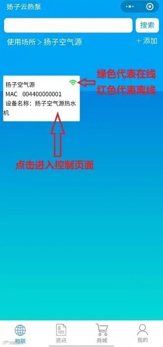 方法一:打开微信点击下方“发现”--找到下方“小程序”--点击搜索“扬子云热泵”--点击进入即可。