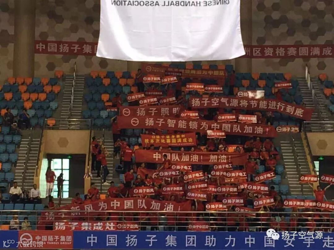 9月30日 第32届奥林匹克运动会女子手球亚洲区资格赛在滁州举行。早上7点扬子集团全国营销中心140余名员工于合肥扬子大厦集合,前往滁州进行以“爱国主义教育主题”的国庆特别节目录制、并为中国女子手球队加油助威!!!