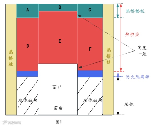 ⑥防火隔离带面积:原防火隔离带面积减去与窗重叠部分及热桥柱重叠的面积;